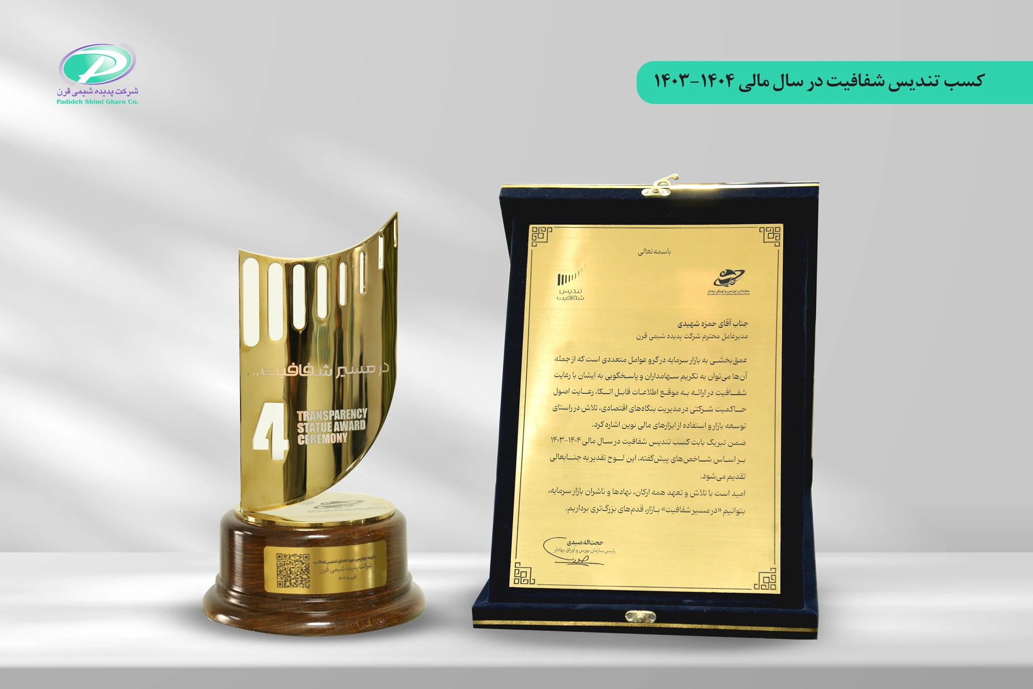 دریافت تندیس شفافیت مالی شرکت پدیده شیمی قرن از سازمان بورس و اوراق بهادار